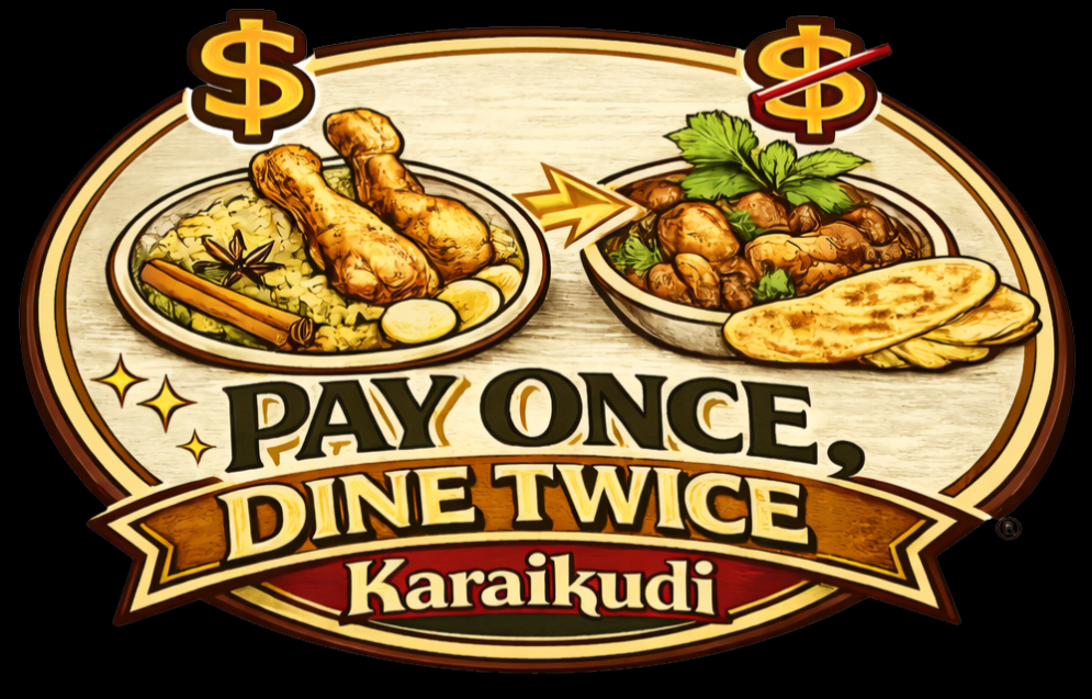 Get FREE GIFT CERTIFICATES* for the amount you spend at Karaikudi Restaurant on the following days: